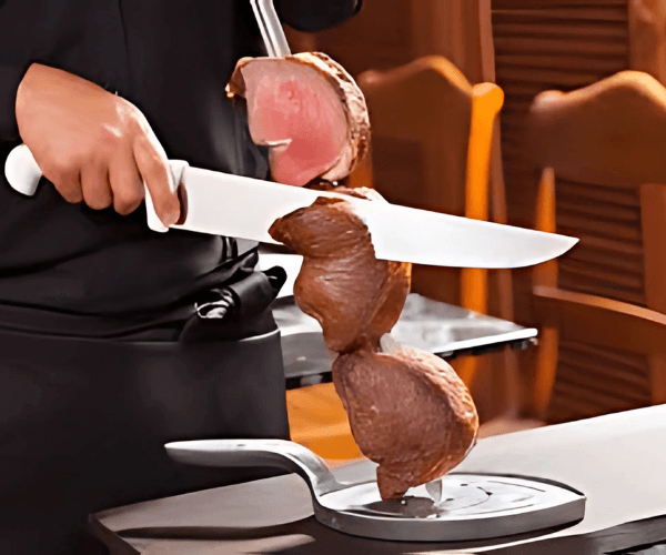 ブラジリアンバーベキューのお店です。サラダ、ポテト、オニオンリング、カレー等はバイキングスタイル!