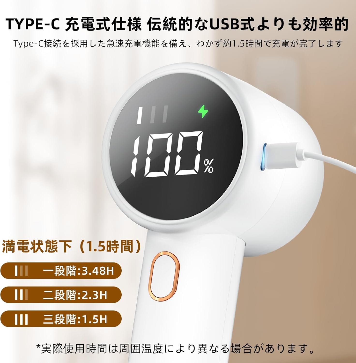 - 充電残量が表示される便利な液晶付き
