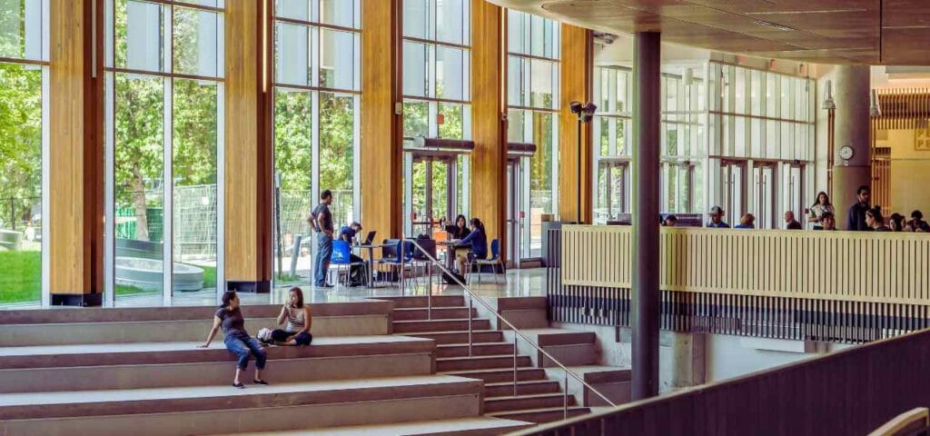 西宮市にあるキャンパスは、まるで海外のようなオシャレな雰囲気!黒田さんはテニス部に所属しながら、モデル活動や福娘代表にも挑戦。マルチタスクをこなすパワフルさが光ります。