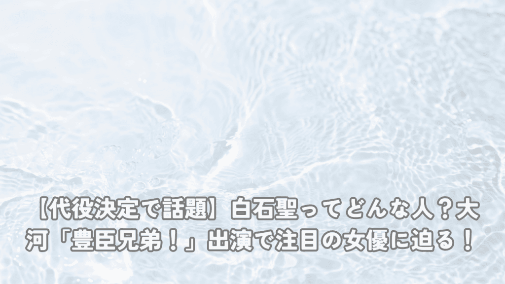 こんにちは!今回は、NHK大河ドラマ「豊臣兄弟!」で代役として出演が決定した女優・白石聖(しらいし せい)さんについてご紹介します。 「名前は聞いたことあるけど、どんな人?」「どこに出てたっけ?」そんな方にもわかりやすく、彼女のプロフィールか...
